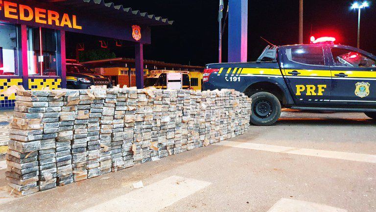 Em ato contínuo, os policiais aprofundaram a fiscalização ao veículo, onde logrou-se êxito em identificar e localizar, dentro do compartimento, 548 tabletes de cloridrato de cocaína, pesando aproximadamente 592 kg.