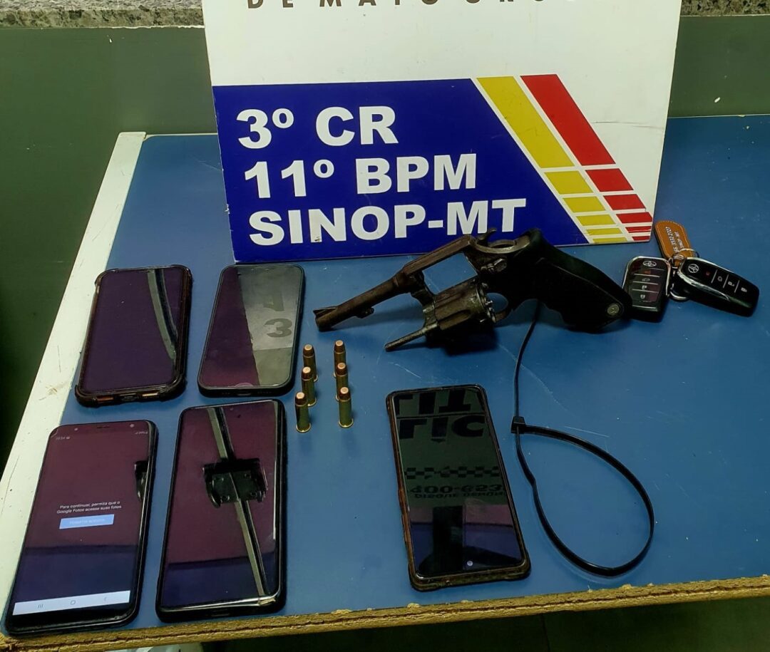 De posse das informações, a equipe policial iniciou diligências e localizou os suspeitos saindo de um milharal, às margens da rodovia. Em procedimento de abordagem, um revólver calibre 38, com seis munições, foi encontrado com um dos homens, além dos celulares das vítimas. Questionados, confessaram terem cometido o roubo e sequestro.