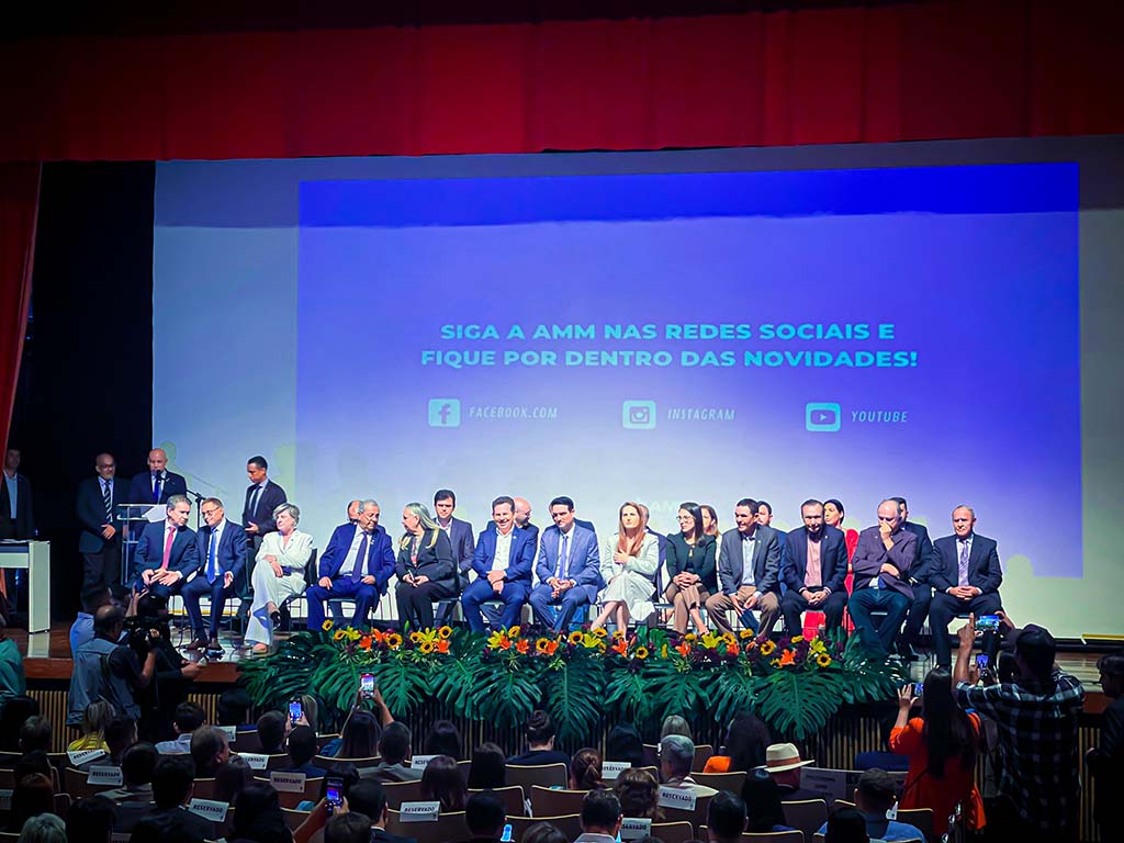 Foi realizada na manhã desta quinta-feira, dia 22 de fevereiro, no Teatro Zulmira Canavarros, solenidade de posse da nova diretoria da Associação dos Municípios Mato-grossenses (AMM), para o triênio 2024/2026, que contou com a presença de autoridades, membros da imprensa e público em geral.