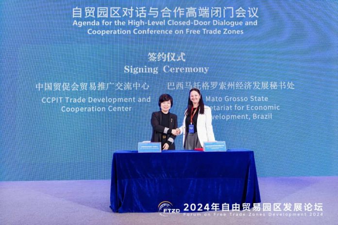 O evento na China reuniu cerca de 400 participantes, incluindo autoridades governamentais, especialistas e representantes de empresas nacionais e internacionais, para discutir a inovação em Zonas de Livre Comércio e oportunidades de cooperação econômica global.