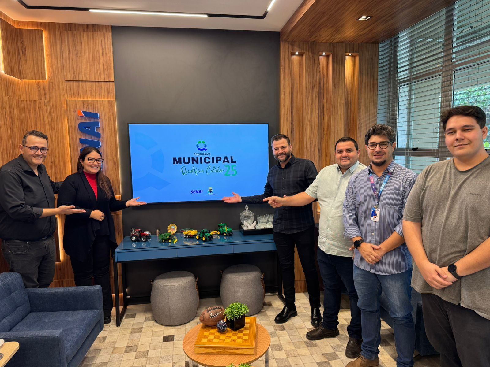 O prefeito Rodrigo Benassi participou de uma reunião estratégica com a equipe técnica do SENAI Mato Grosso, em Cuiabá, para tratar da implementação do Programa Municipal Qualifica Colíder 25, voltado à formação profissional da população colidense.